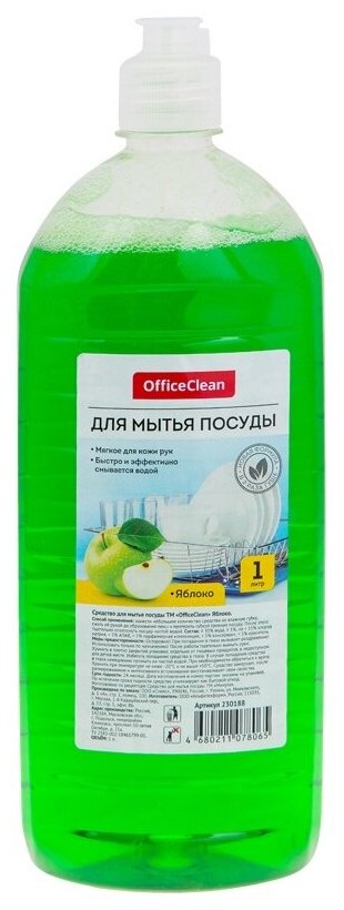 Купить Средство для мытья посуды OfficeClean Яблоко, флакон с дозатором флип-топ, 1л (230188)