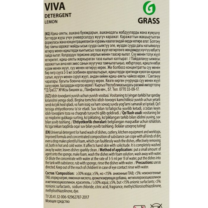 GRASS Средство для мытья посуды Grass Viva, 1 л