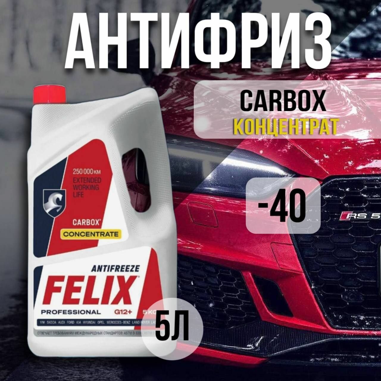 Антифриз FELIX Carbox, красный, -40С, G12+, концентрат, 5 кг