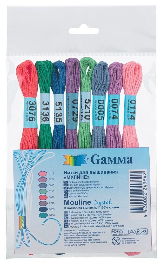 Нитки для вышивания Gamma набор мулине MOULINE 100% хлопок 8x8 м crystal