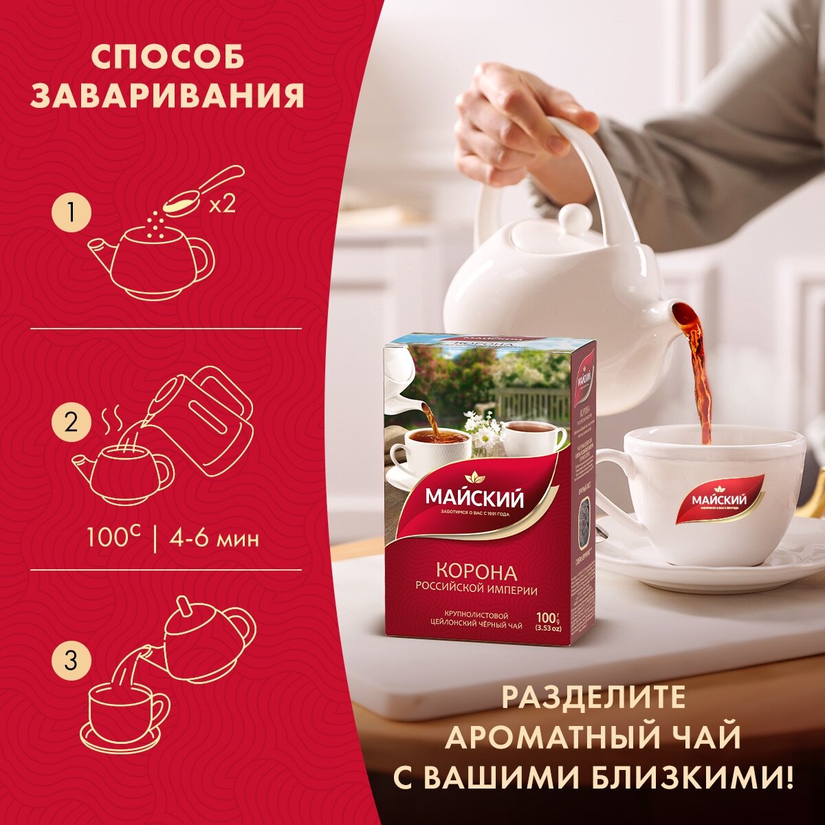 Чай черный Майский Корона Российской империи крупнолистовой, 100 г