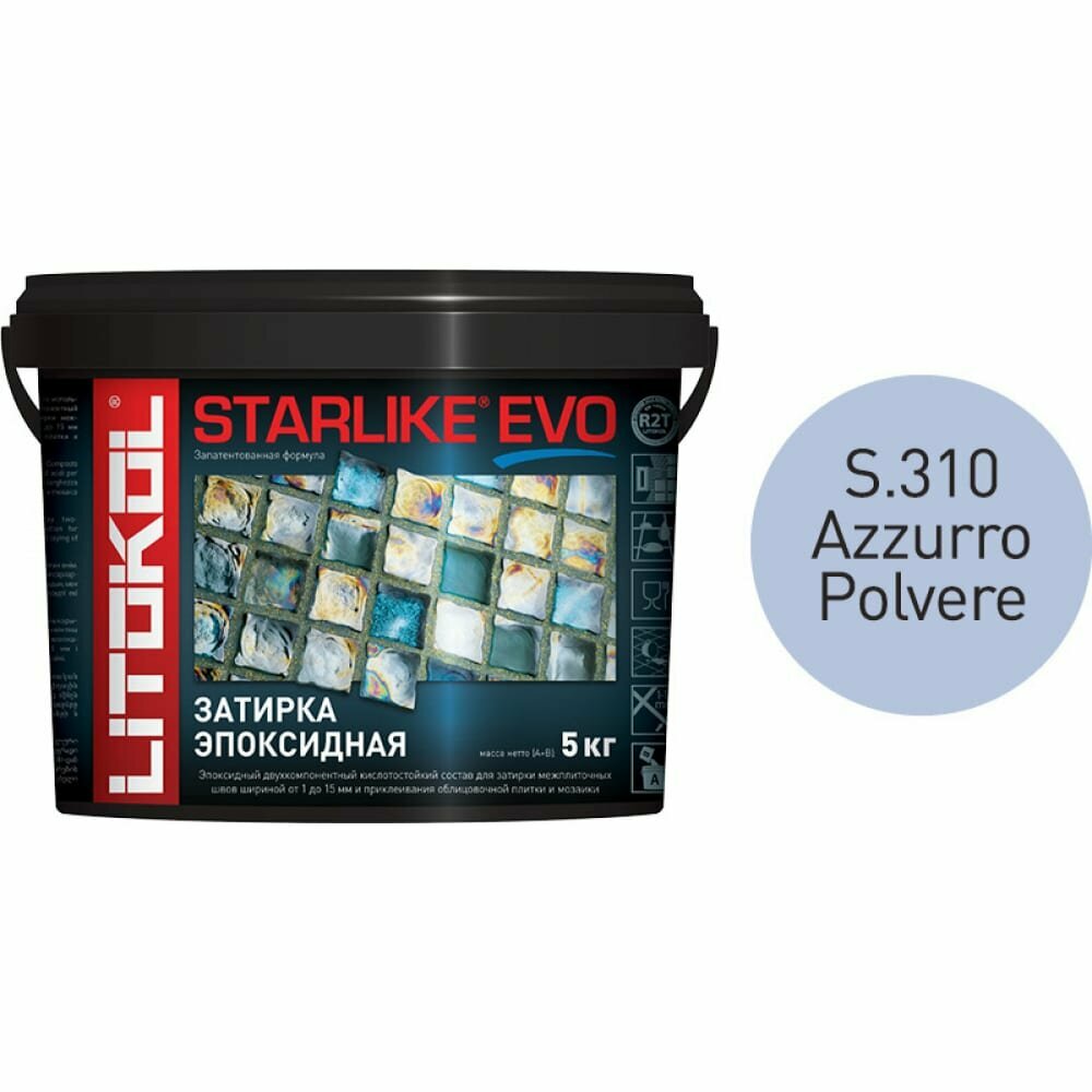 Купить Затирка эпоксидная двухкомпонентная Litokol Starlike Evo S.310, Azzurro Polvere, 5 кг