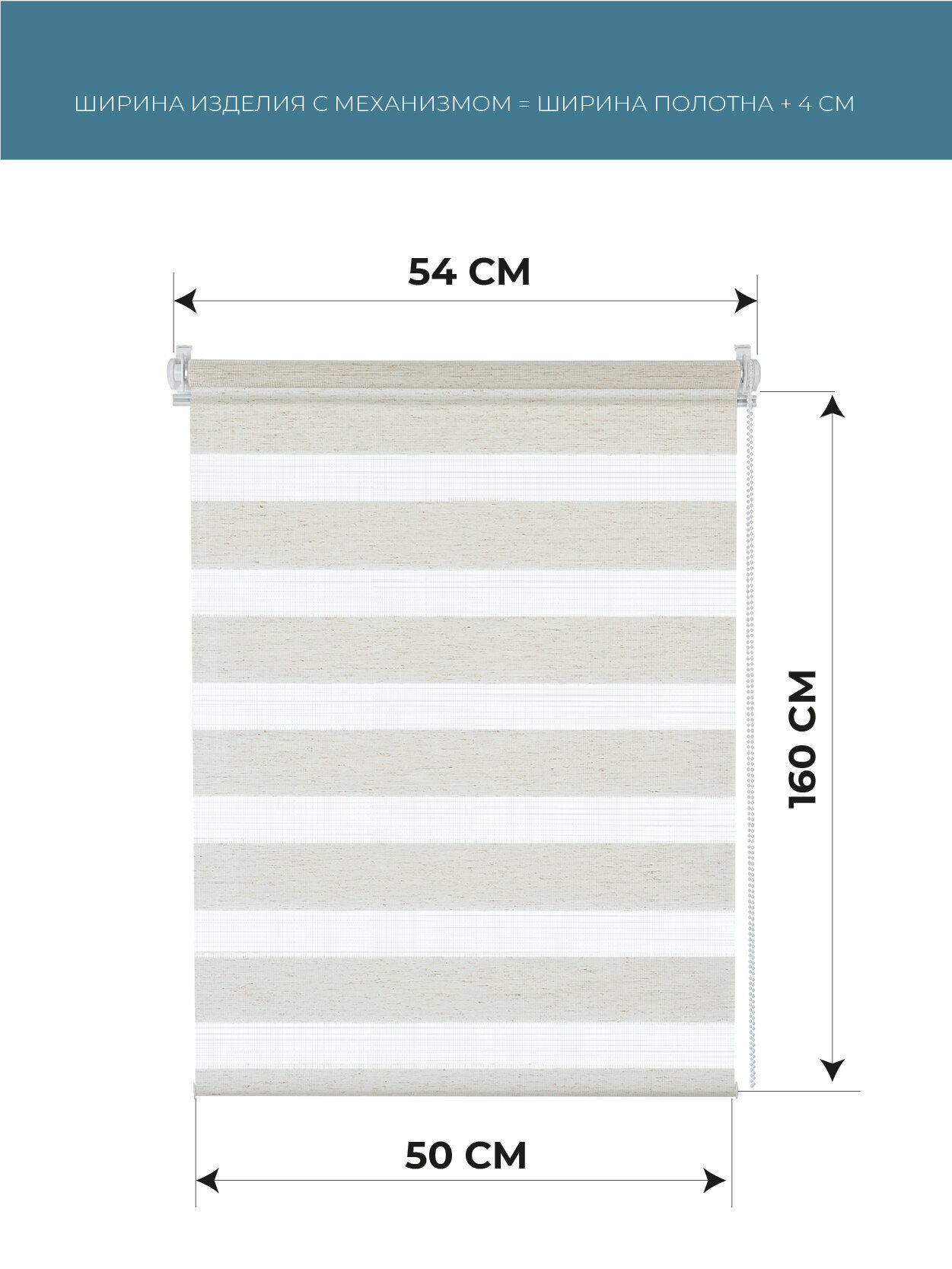 Купить Штора рулонная день-ночь Бейс Эко-бежевый 50x160 см