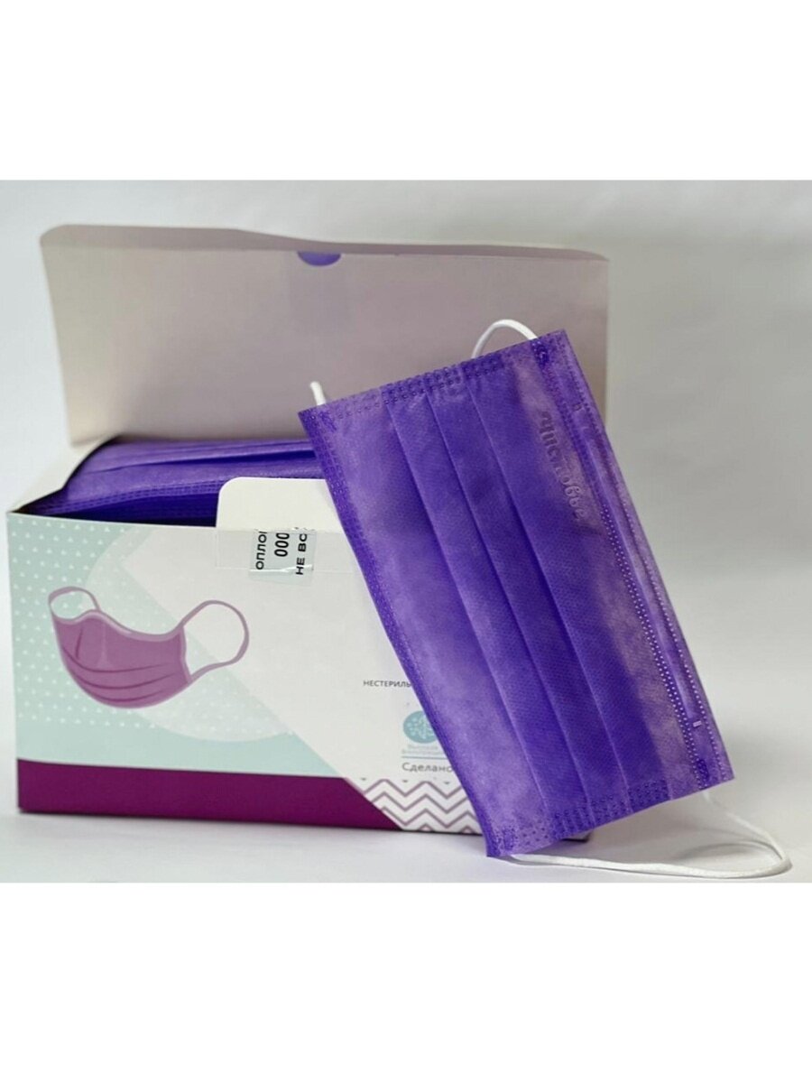 Маски одноразовые медицинские, защитные Фиолетовые 100 штук 604-086
