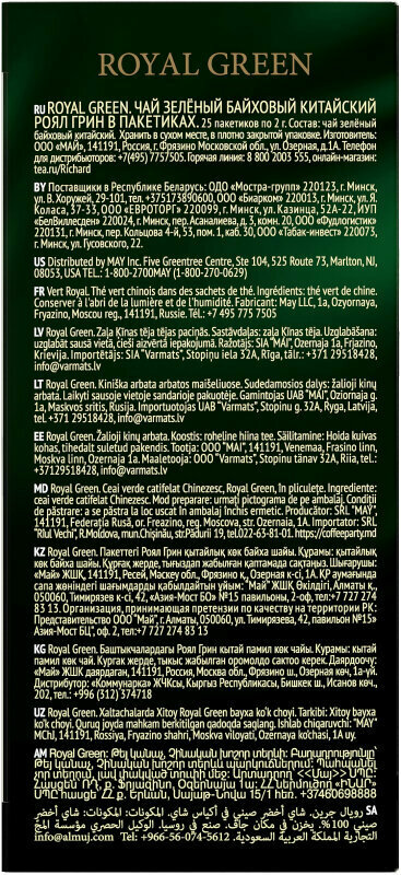 Чай ричард Роял Грин, 25 пакетиков по 2 г