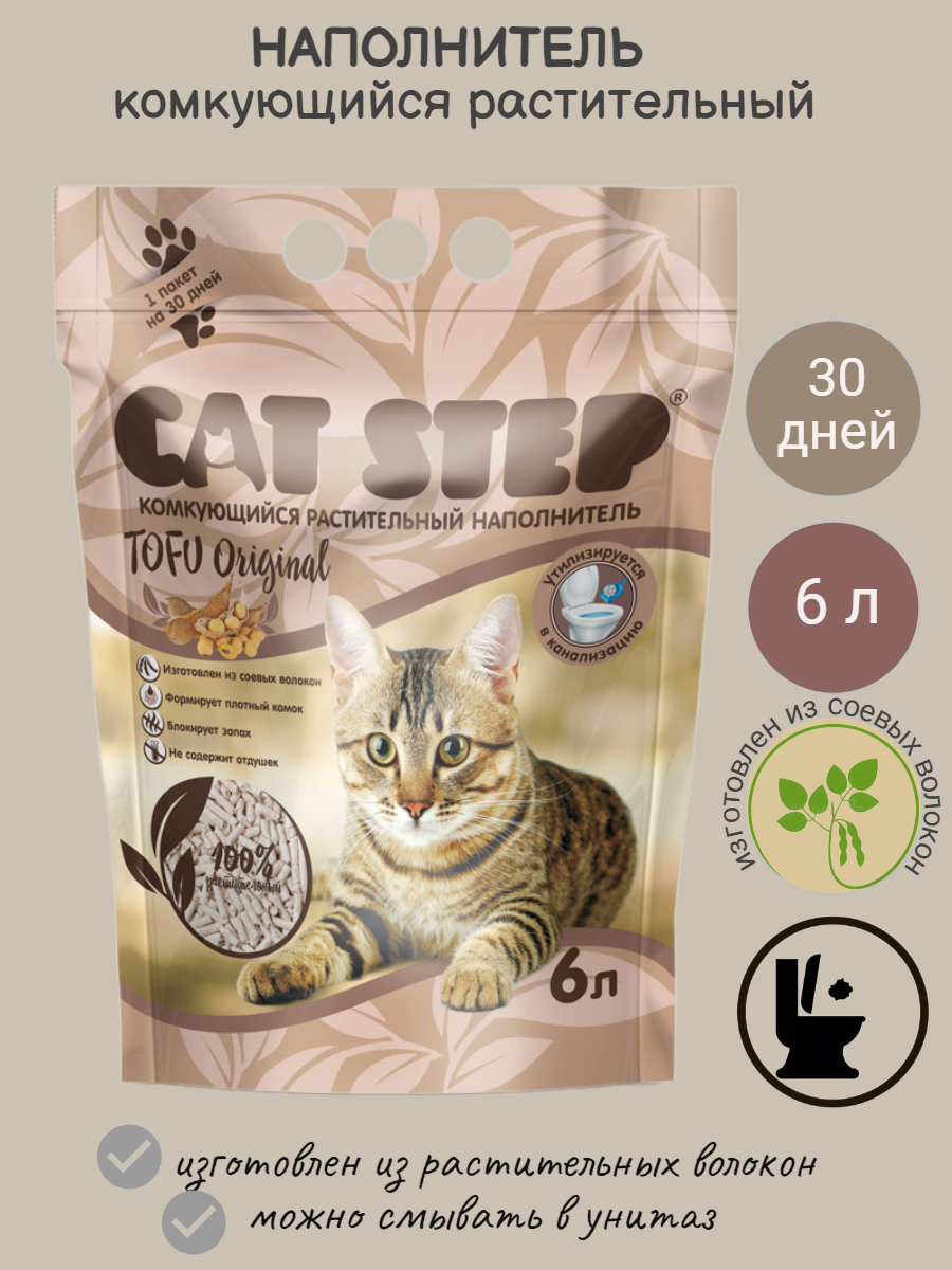 CAT STEP TOFU ORIGINAL - Кэт степ наполнитель комкующийся для туалета кошек (6 л)