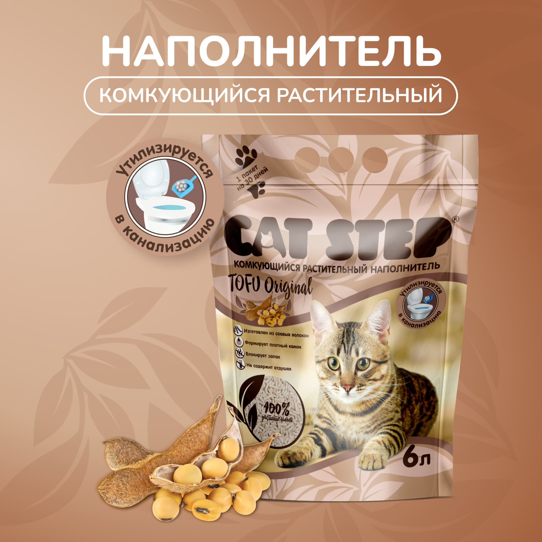 Cat Step соевый комкующийся наполнитель для кошачьих туалетов Original 6л Tofu/Тофу