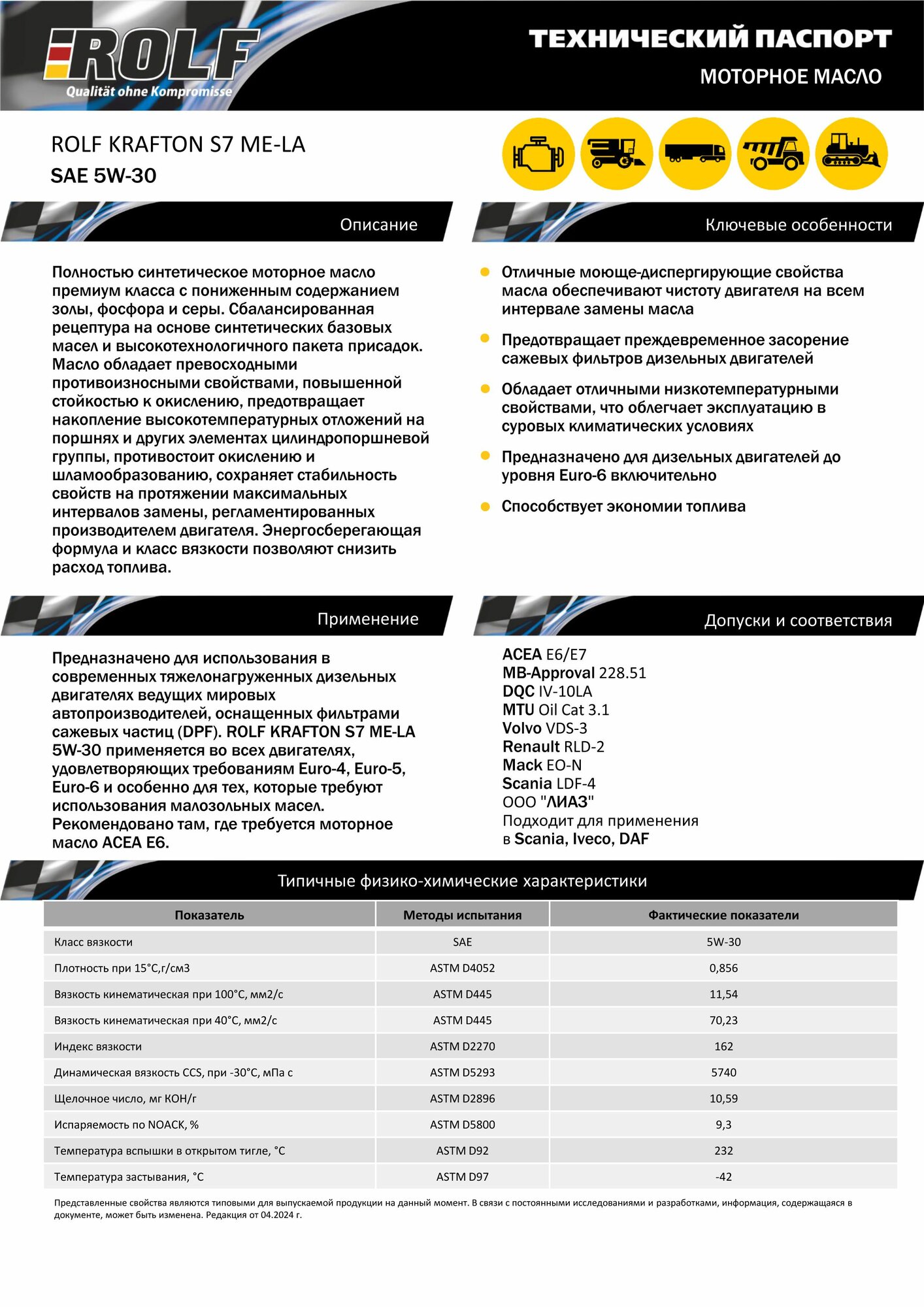 СохранитьROLF Rolf Krafton S7 Me-La Синт. 5W30 20Л E4/E6 интересное: