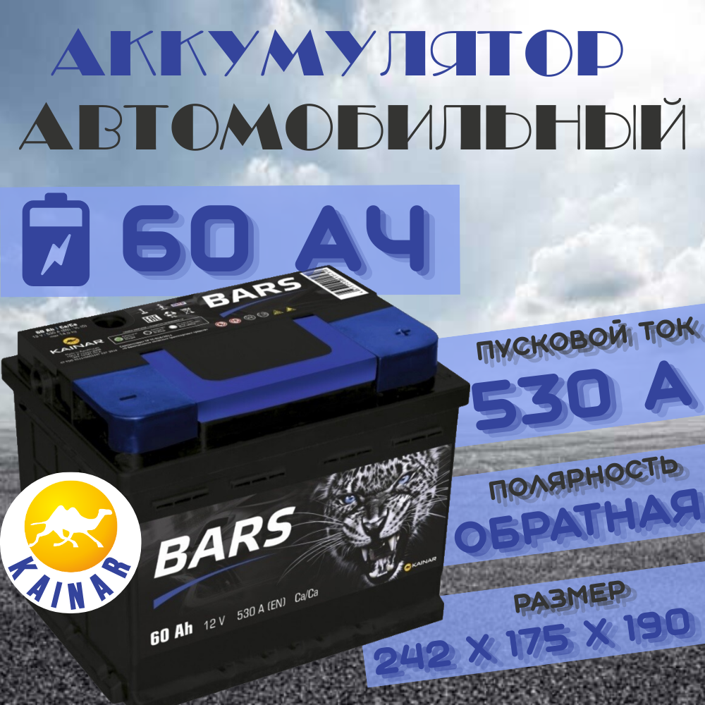 Аккумулятор автомобильный Bars 60 А/ч 530 А обр. пол. Евро авто (242x175x190) 6СТ-60 АПЗ