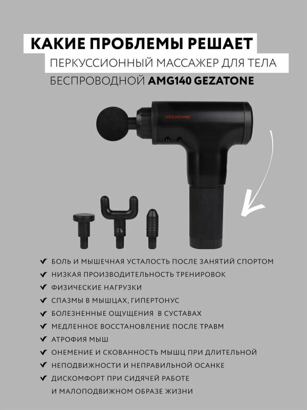 Перкуссионный массажный пистолет беспроводной AMG140, Gezatone интересное: