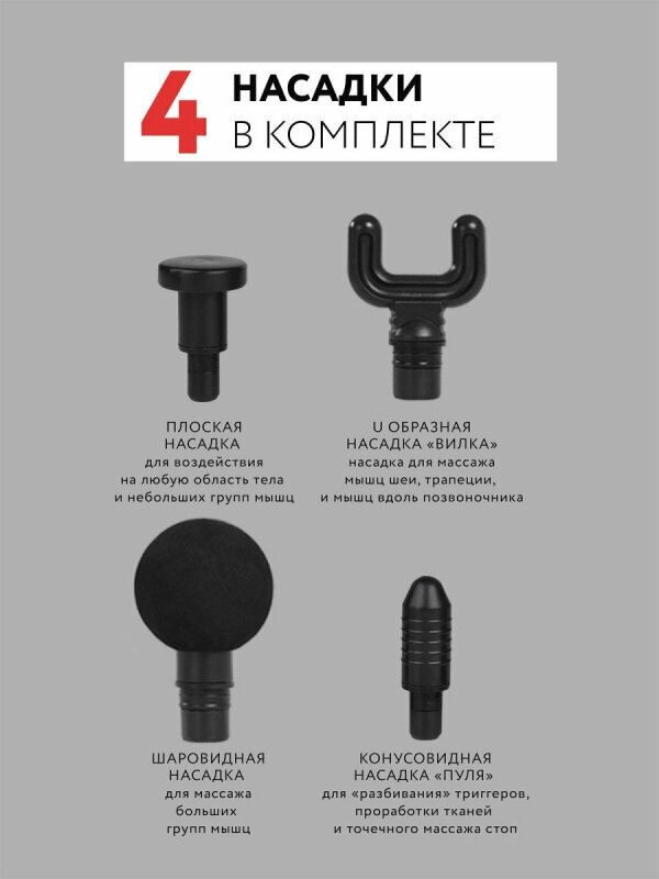 | Вид массажа | вибрационный / перкуссионный |