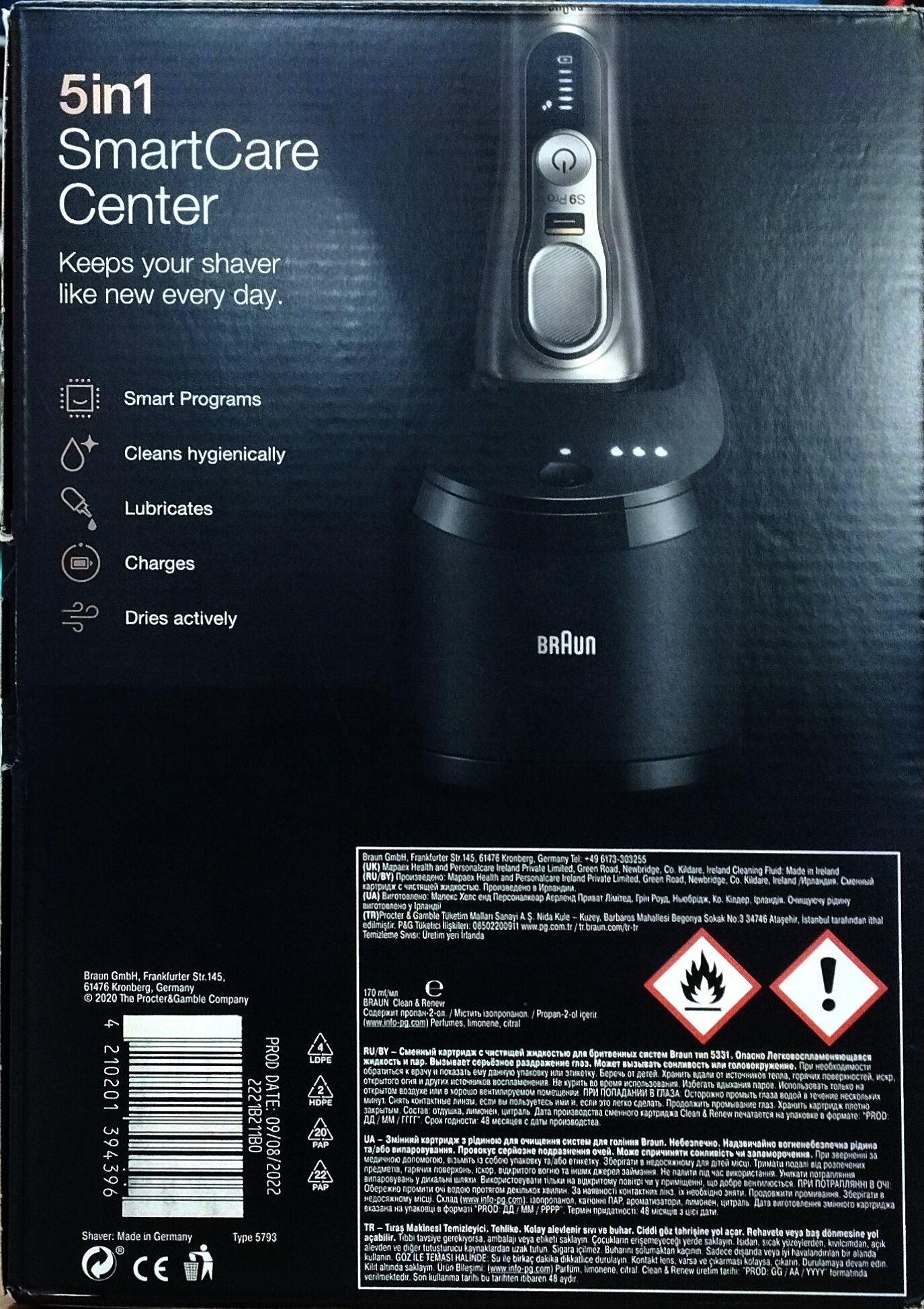 | Подробная комплектация | футляр PowerCase, станция 5 в 1 SmartCare, катридж для очистки (1x), кабель питания SmartPlug, щеточка для чистки |