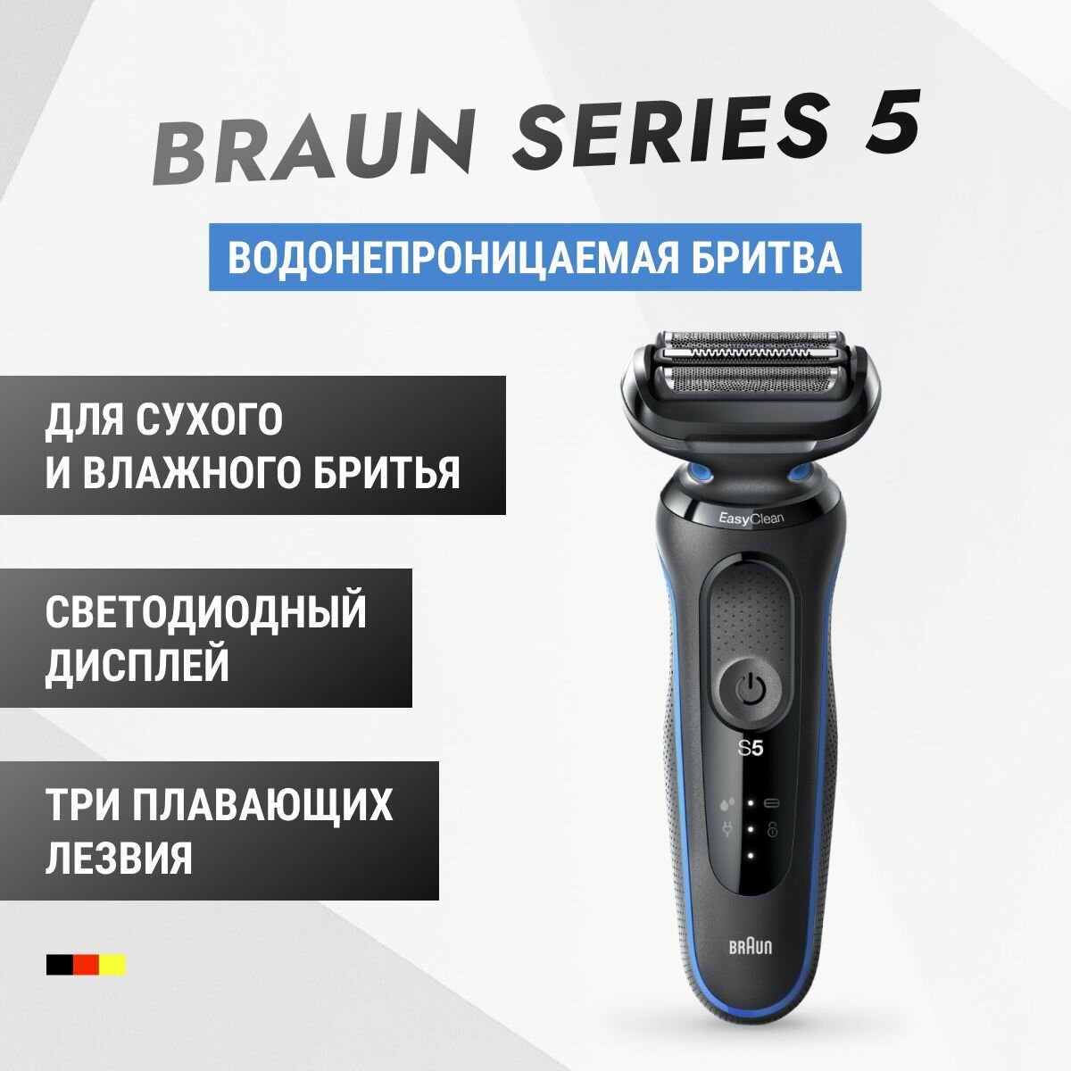 Электробритва мужская Braun 51-M1000S водонепроницаемая с подсветкой, 3 режущих сетки