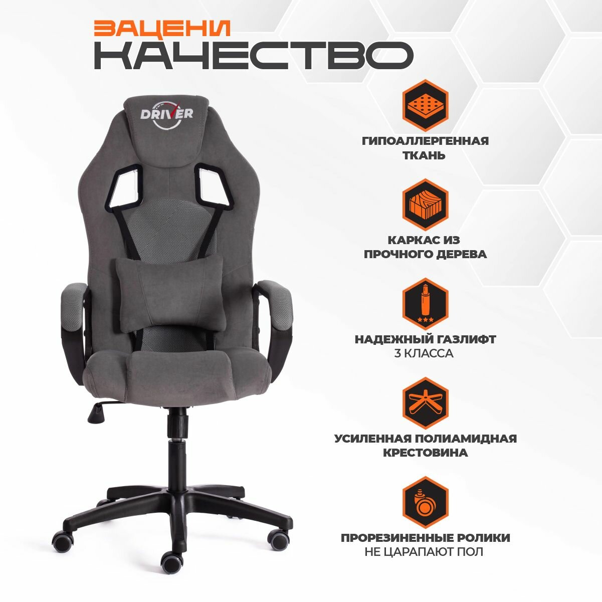 Кресло компьютерное игровое TetChair DRIVER ткань, черный/серый
