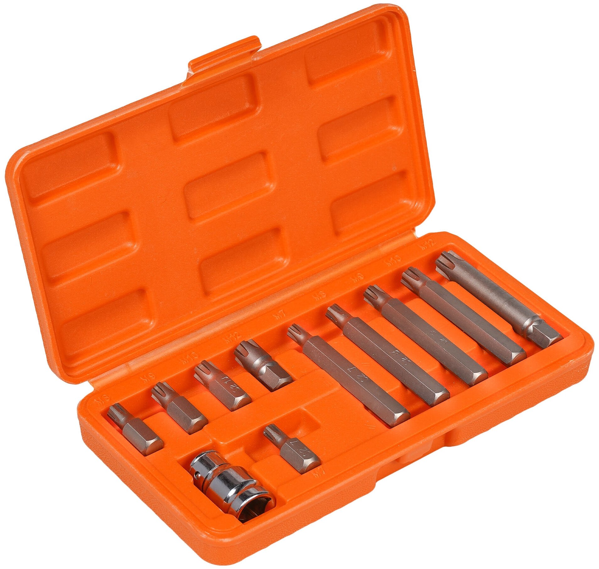 Набор вставок бит AIRLINE SPLINE (М) 3/8", 1/2" (M5-M12) удл. 30, 75мм 11 шт в кейсе
