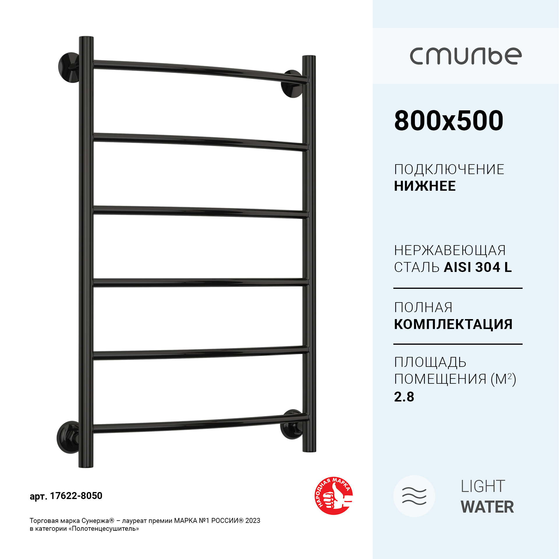 Полотенцесушитель водяной Сунержа 17622-8050 Версия-Н2 Полотенцесушитель водяной Стилье 800х500 мм (6) Г 18, черный