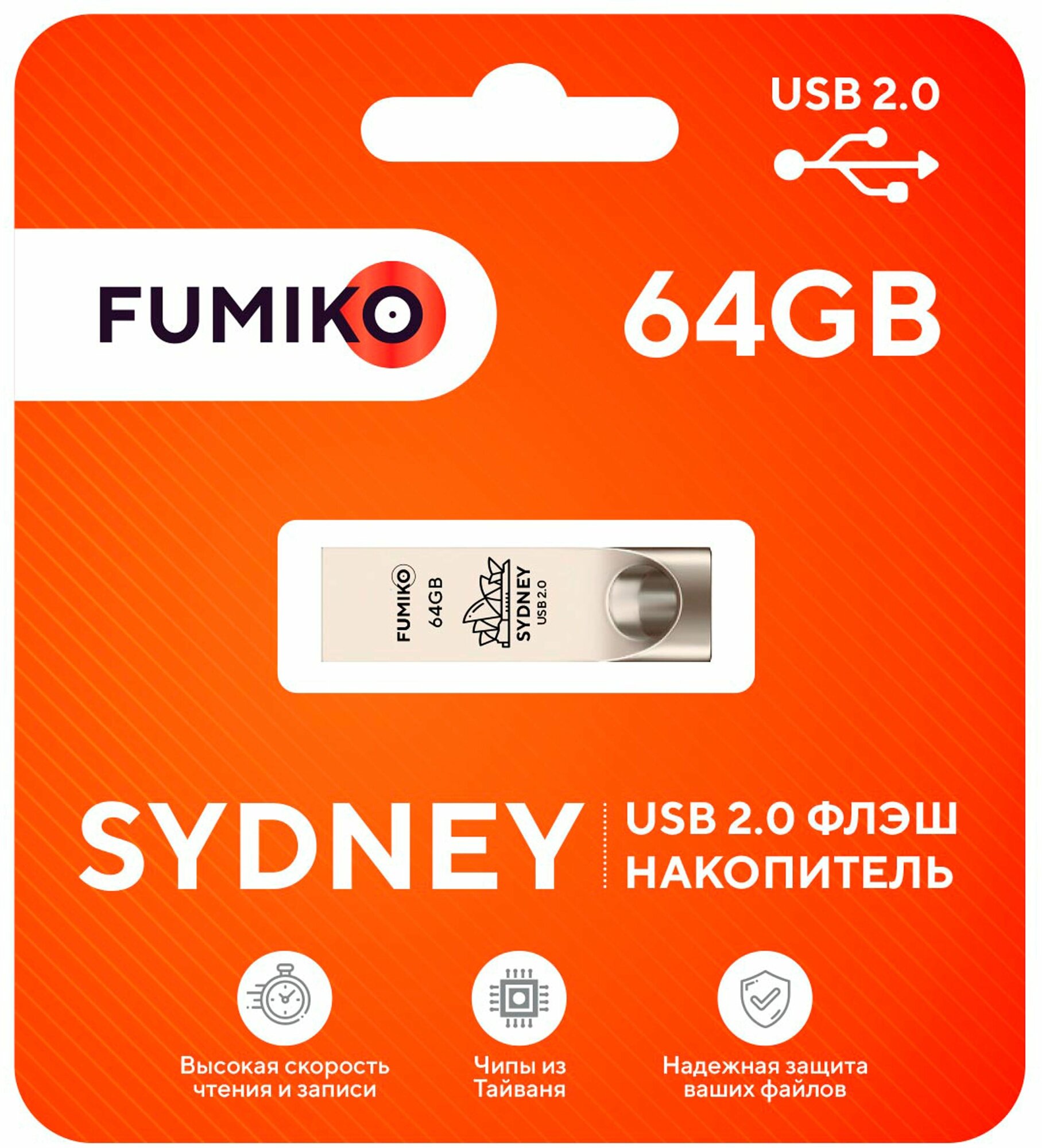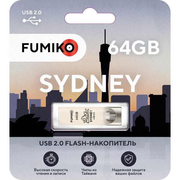 Флешка 64GB USB2 Fumiko Sydney серебристая интересное: