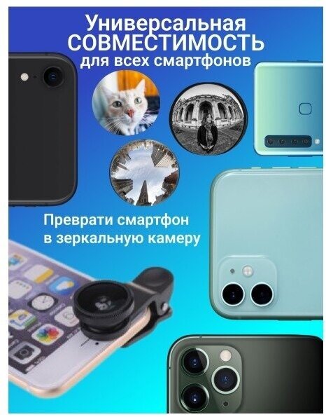 Купить Универсальный объектив для смартфона Fisheye рыбий глаз, комплект линза для макро съемки 3 шт