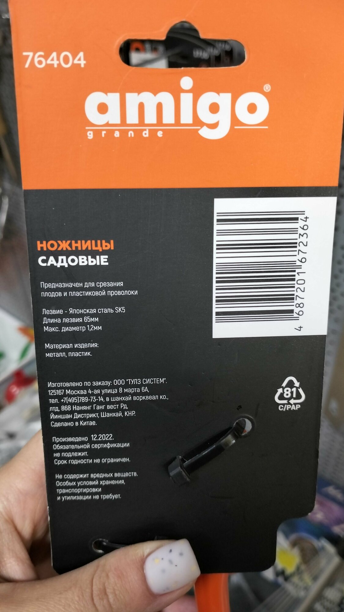 Ножницы садовые для срезания плодов и резки пластиковой проволоки Amigo 19,5 см