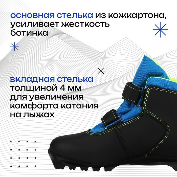 Ботинки лыжные детские Winter Star control kids, NNN, искусственная кожа, цвет чёрный/синий/лайм-неон, лого белый, размер 39