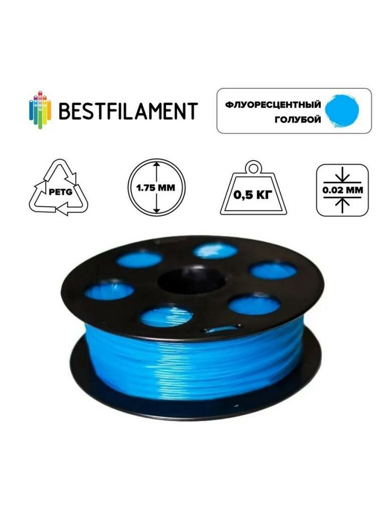 Пластик для 3d принтера PETG флуоресцентный голубой 1,75 мм BestFilament, 1 кг