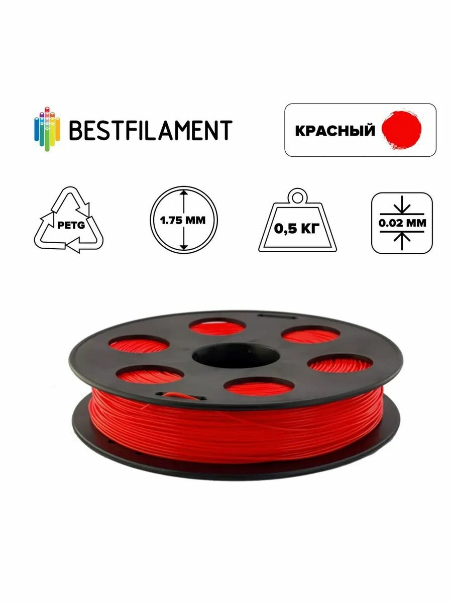 Купить PETG Красный 500 гр. 1.75 мм пластик Bestfilament для 3D-принтера