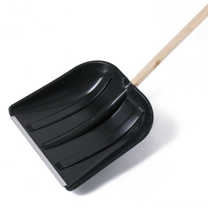 Купить Лопата пластиковая, ковш 410 × 415 мм, с металлической планкой, деревянный черенок, с ручкой