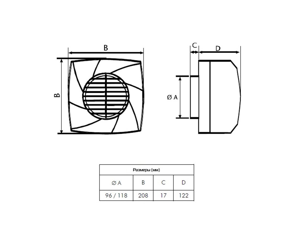 Вентилятор осевой / вытяжка в ванную / вытяжка в туалет d100 мм, белый