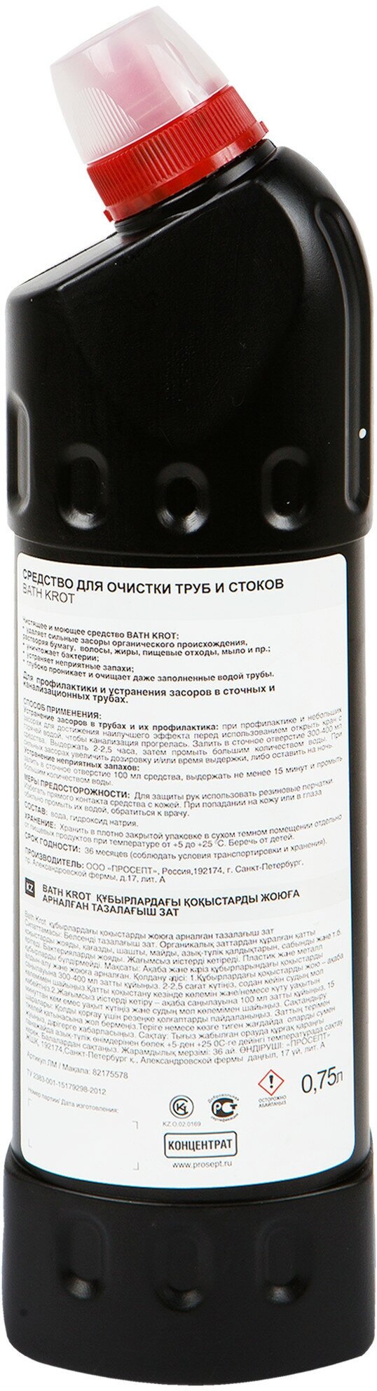 Средство для устранения засоров "BATH PROF" 750 МЛ концентрат (1/12) "PROSEPT"