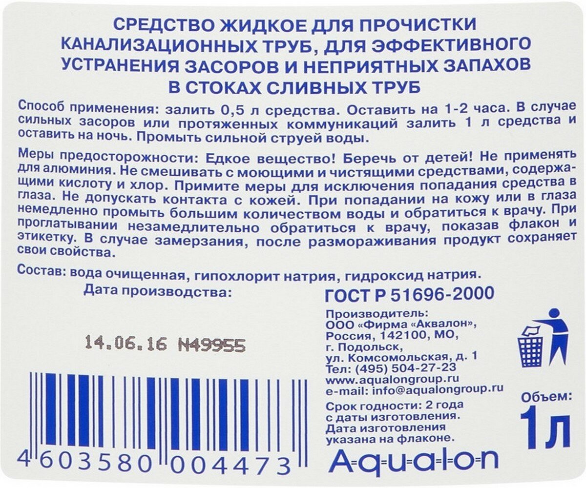 Ниже Вы можете прочитать отзывы на Средство для прочистки труб Aqualon "Очиститель стоков", жидкость, 1л, ознакомится с подробными характеристиками, посмотреть интересные обзоры и фотографии на Средство для прочистки труб Aqualon "Очиститель стоков", жидкость, 1л.