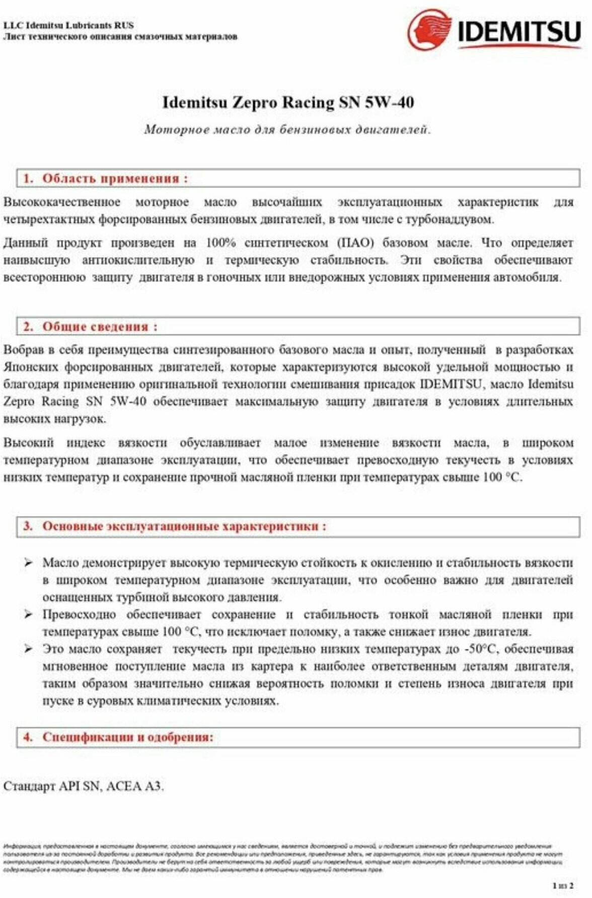 Ниже Вы можете прочитать отзывы на Idemitsu ZEPRO Racing 5W-40 4л, ознакомится с подробными характеристиками, посмотреть интересные обзоры и фотографии на Idemitsu ZEPRO Racing 5W-40 4л.