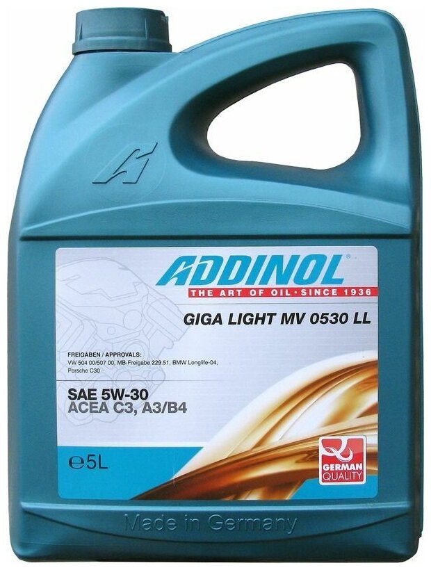 Ниже Вы можете прочитать отзывы на Синтетическое моторное масло ADDINOL Giga Light MV 0530 LL SAE 5W-30, 5 л, ознакомится с подробными характеристиками, посмотреть интересные обзоры и фотографии на Синтетическое моторное масло ADDINOL Giga Light MV 0530 LL SAE 5W-30, 5 л.