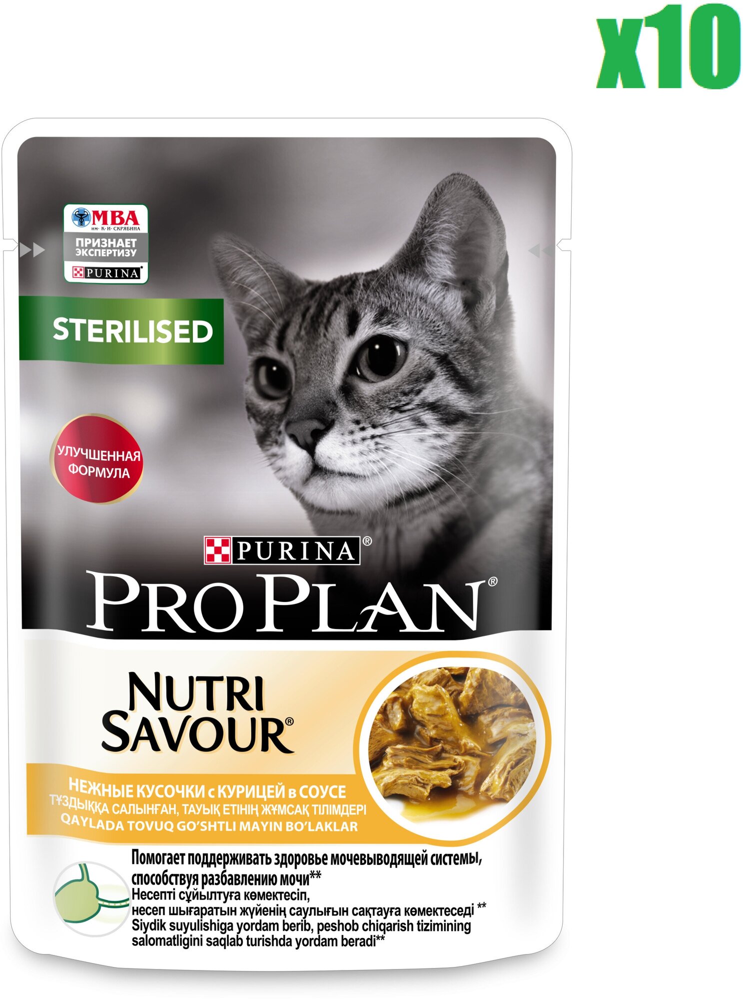 Купить Влажный корм для стерилизованных кошек Purina Pro Plan Sterilised Nutri Savour Adult Chicken, с курицей, 10 шт. х 85 г (кусочки в соусе)