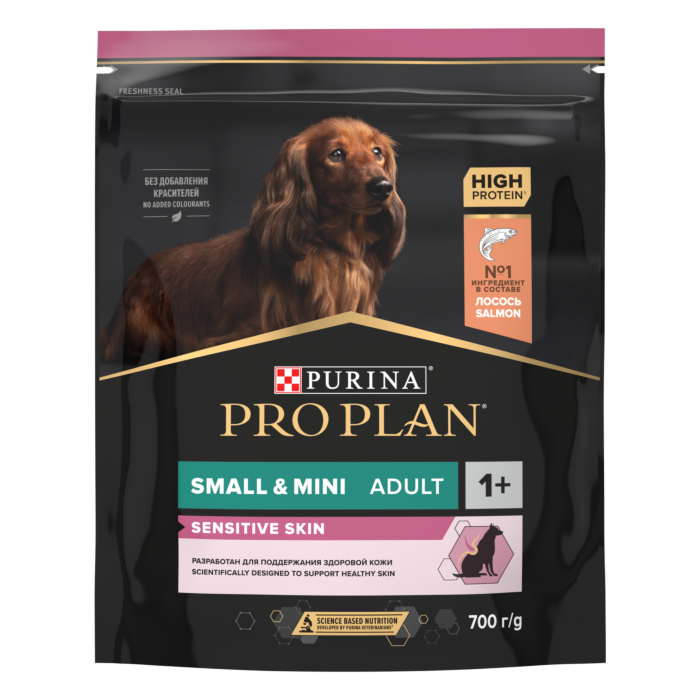 Сухой корм PRO PLAN® SENSITIVE SKIN для собак мелких и карликовых пород с чувствительной кожей, с высоким содержанием лосося, 700гр