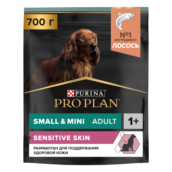 PRO PLAN Adult Small & Mini Sensitive Skin сухой корм для собак мелких и карликовых пород 1 - 10 кг с чувствительной кожей Лосось 700гр