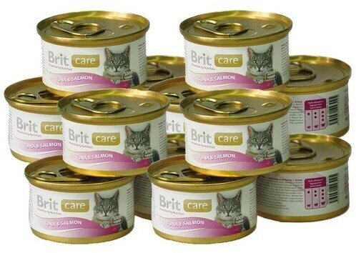 Консервы Brit Care Tuna & Salmon для взрослых кошек с лососем и тунцом,упаковка 12*80г