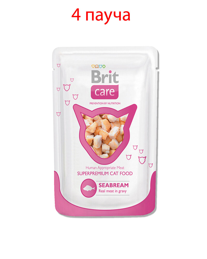 Паучи Brit Care Cat для кошек со вкусом морского леща, 80г х 24шт.