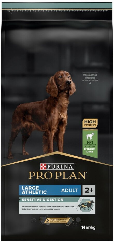 Pro Plan Large Adult Athletic для крупных собак атлетов с чувствительным пищеварением Ягненок, 14 кг.