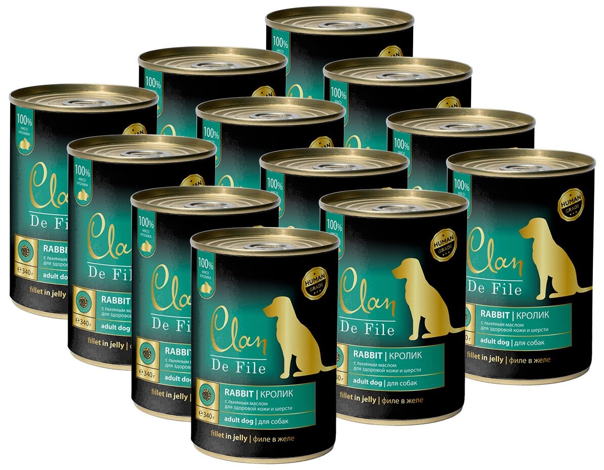 CLAN De File консервы для собак 340 г Кролик х 12 шт.
