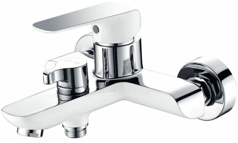 Смеситель для ванны и душа Kaiser (Кайзер) Glory 69122 однорычажный с лейкой и шлангом, настенное крепление, хром/белый