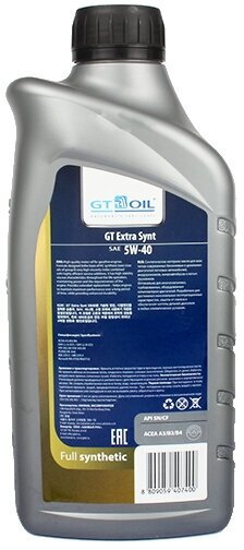 GT OIL Масло Extra Synt, SAE 5W-40, API Sn/cf, 1л 8809059407400 .