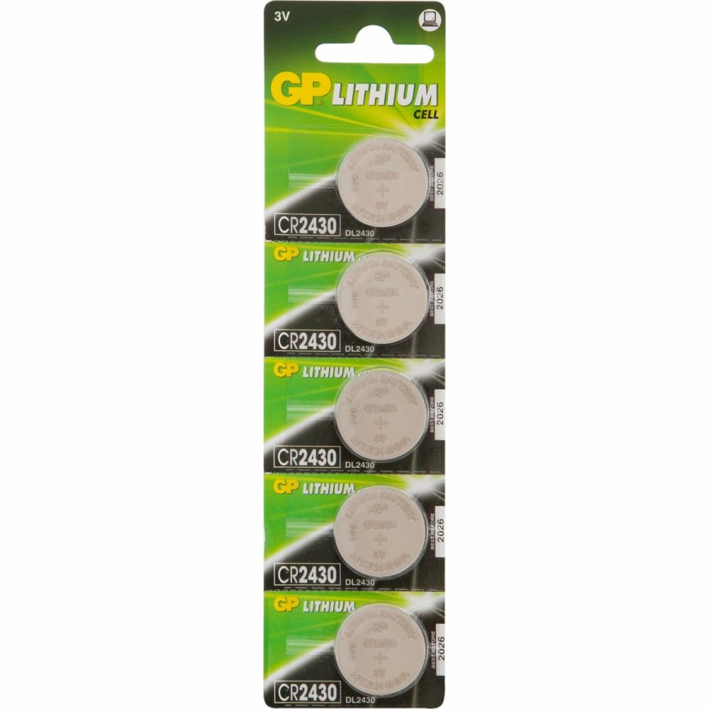 Литиевые дисковые батарейки GP Lithium CR2430 - 5 шт., каждая в своем отрывном блистере