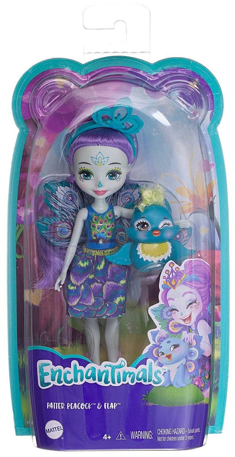 Кукла Enchantimals Пэттер Павлина с любимой зверюшкой, 15 см, FXM74