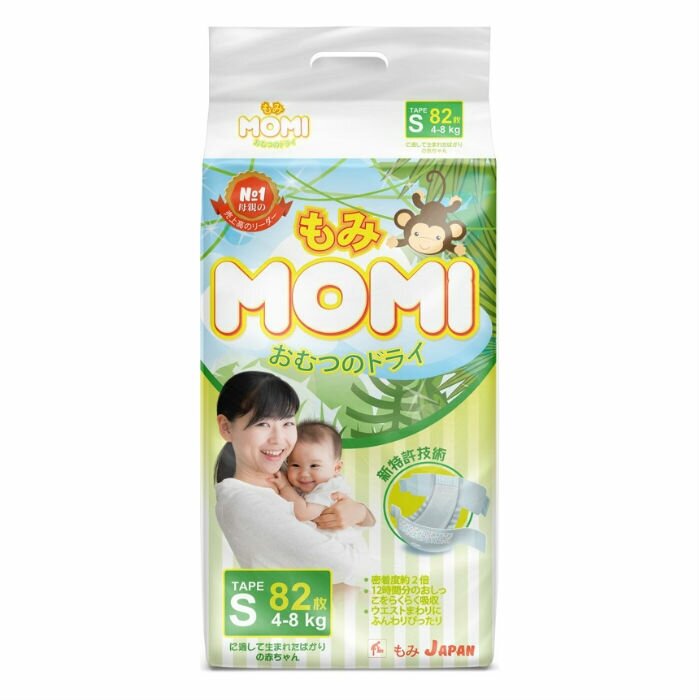 MOMI Подгузники MOMI S (4-8 кг), 82 шт