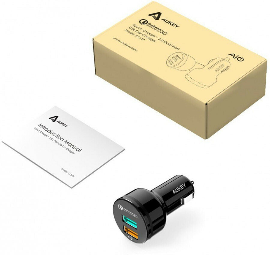 Автомобильное зарядное устройство Aukey 2 Port Car Charger with Quick Charge 3.0 33Вт, цвет Черный (CC-T7)