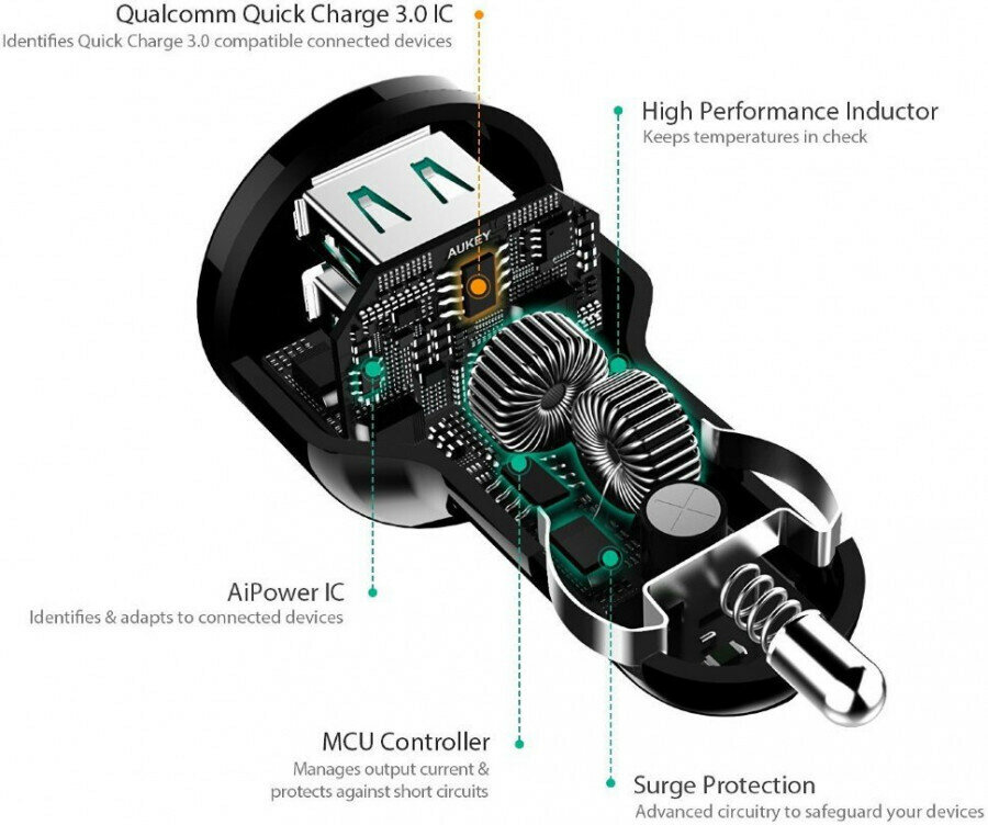 СохранитьАвтомобильное зарядное устройство Aukey CC-T7 интересное: