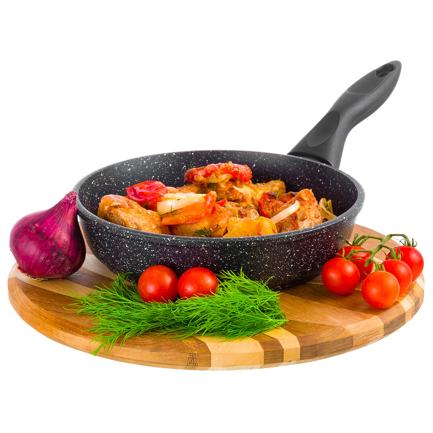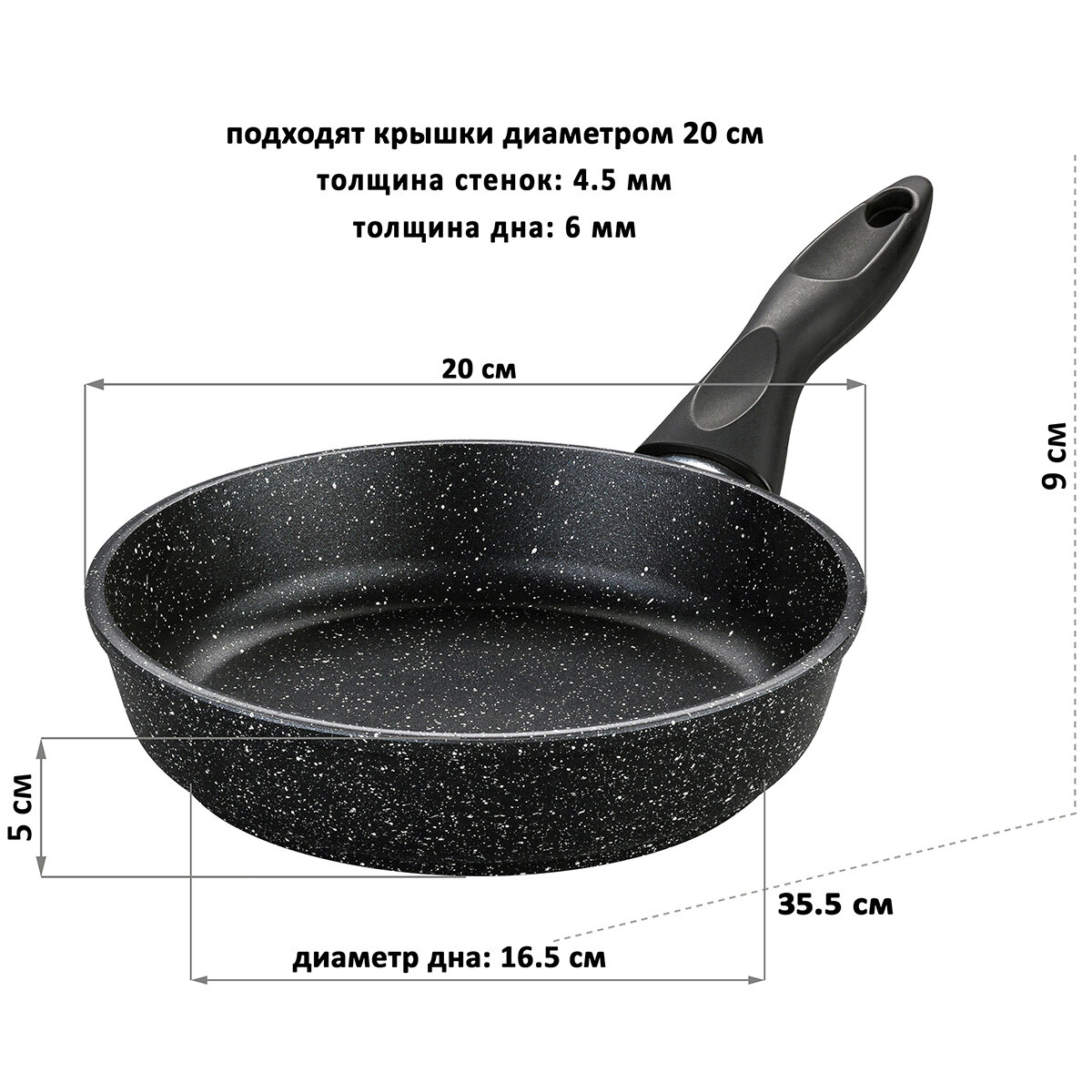 Сковорода глубокая 20 см гармония вкуса "Черный мрамор" без крышки, н/р, 35,5*21*9 см интересное: