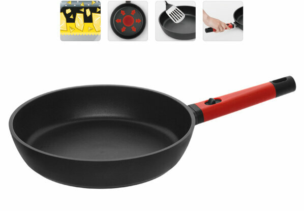 | Плюсы: | черная сковородка, съемная ручка, стильный дизайн |