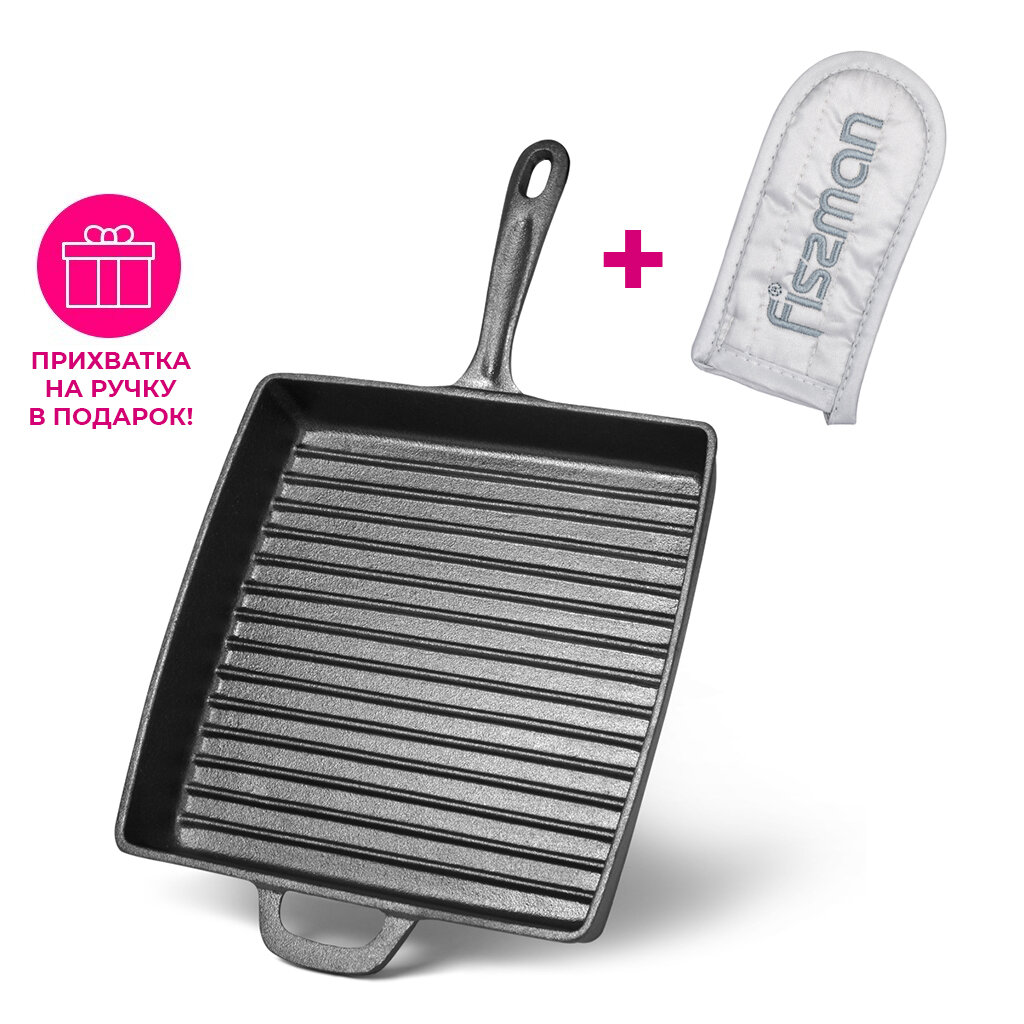 СохранитьСковорода-гриль Fissman 28х4,7 см квадратная с вспомогательной ручкой (чугун) (4137) интересное: