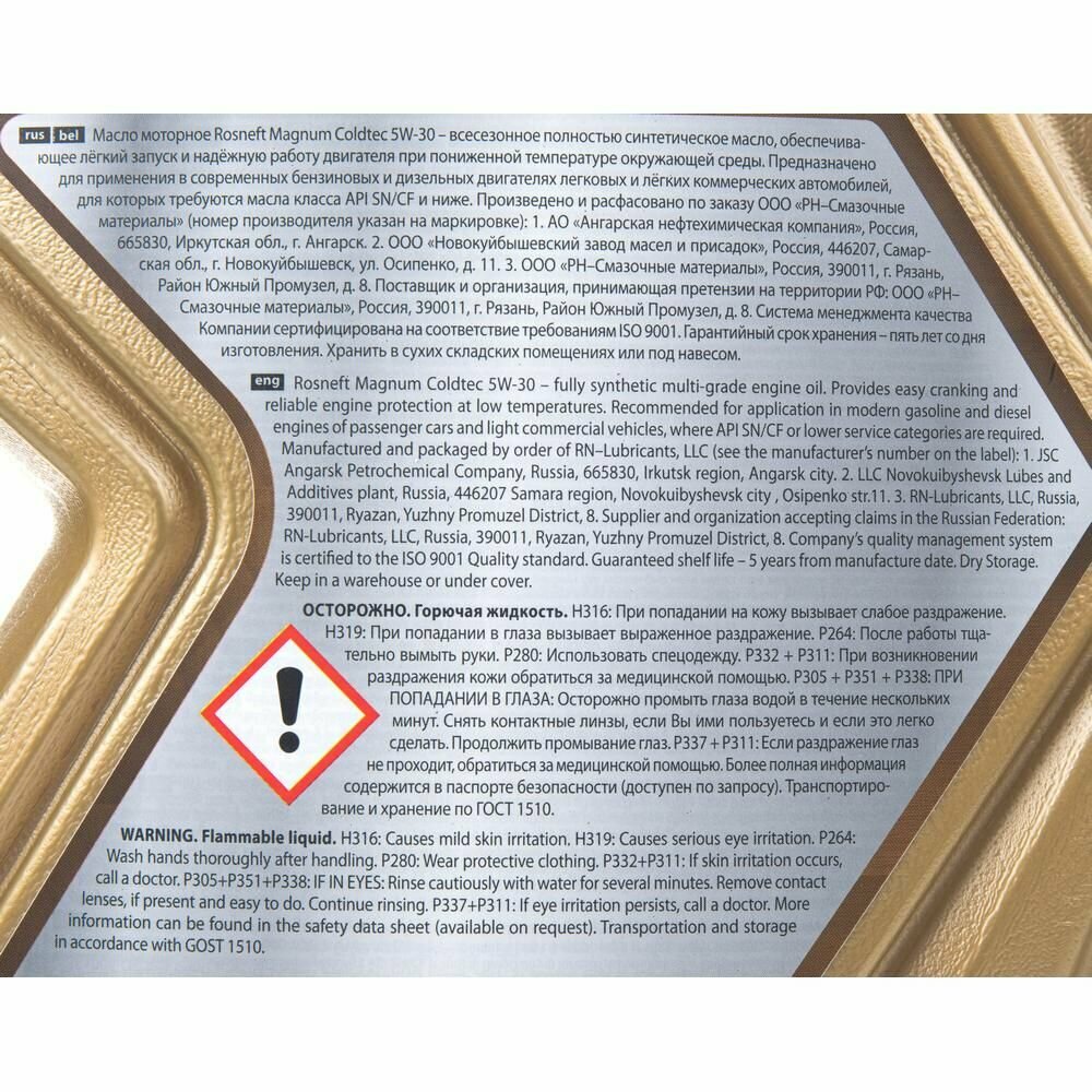 Роснефть 40813242 Масо моторное Rosneft Magnum Coldtec 5W-30 синтетическое 4 40813242